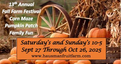 During the week we are booking school tours for the pumpkin patch and Apple Orchard. Please call or message for more information. Justin and April will be the tour guides and have all child background clearances.